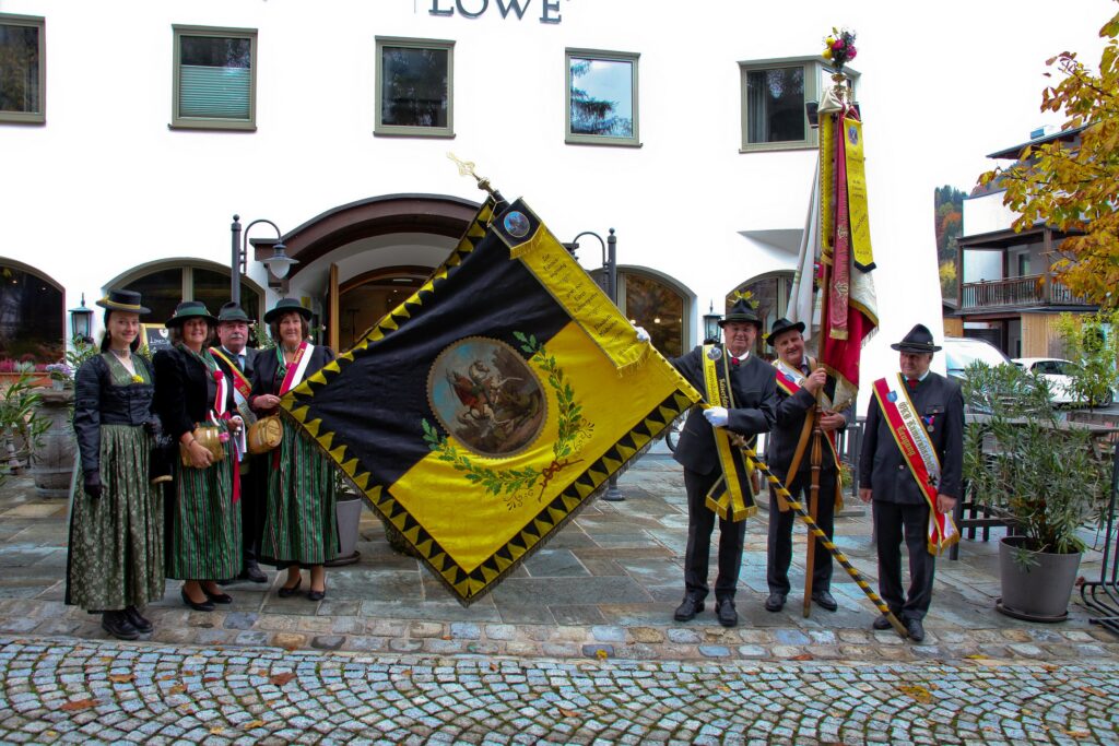 Der Tag der Kameradschaft am österreichischen Nationalfeiertag war für die Pfarrgemeinde Leogang allerdings zunächst einmal ein Festtag! Nicht nur, weil neben der Kameradschaft weitere neun Vereine dem Sonntags-Gottesdienst einen würdigen und prächtigen Rahmen verliehen, sondern auch, weil die historische Fahne des ehemaligen Heimkehrer-Vereins, nunmehr frisch restauriert, unter der Fahnenpatin Elisabeth Madreiter ihren erneuerten kirchlichen Segen erhielt. Und das unter den festlichen Klängen der Musikkapelle Leogang und den Liedern von Martina und Monika.