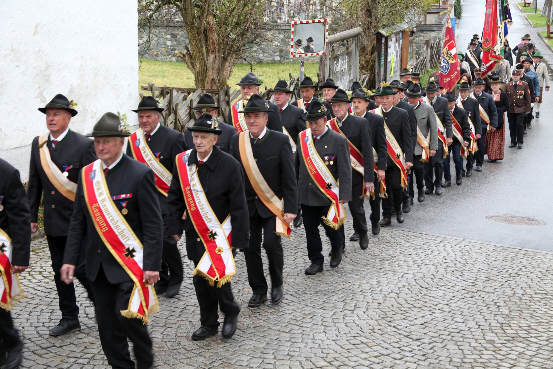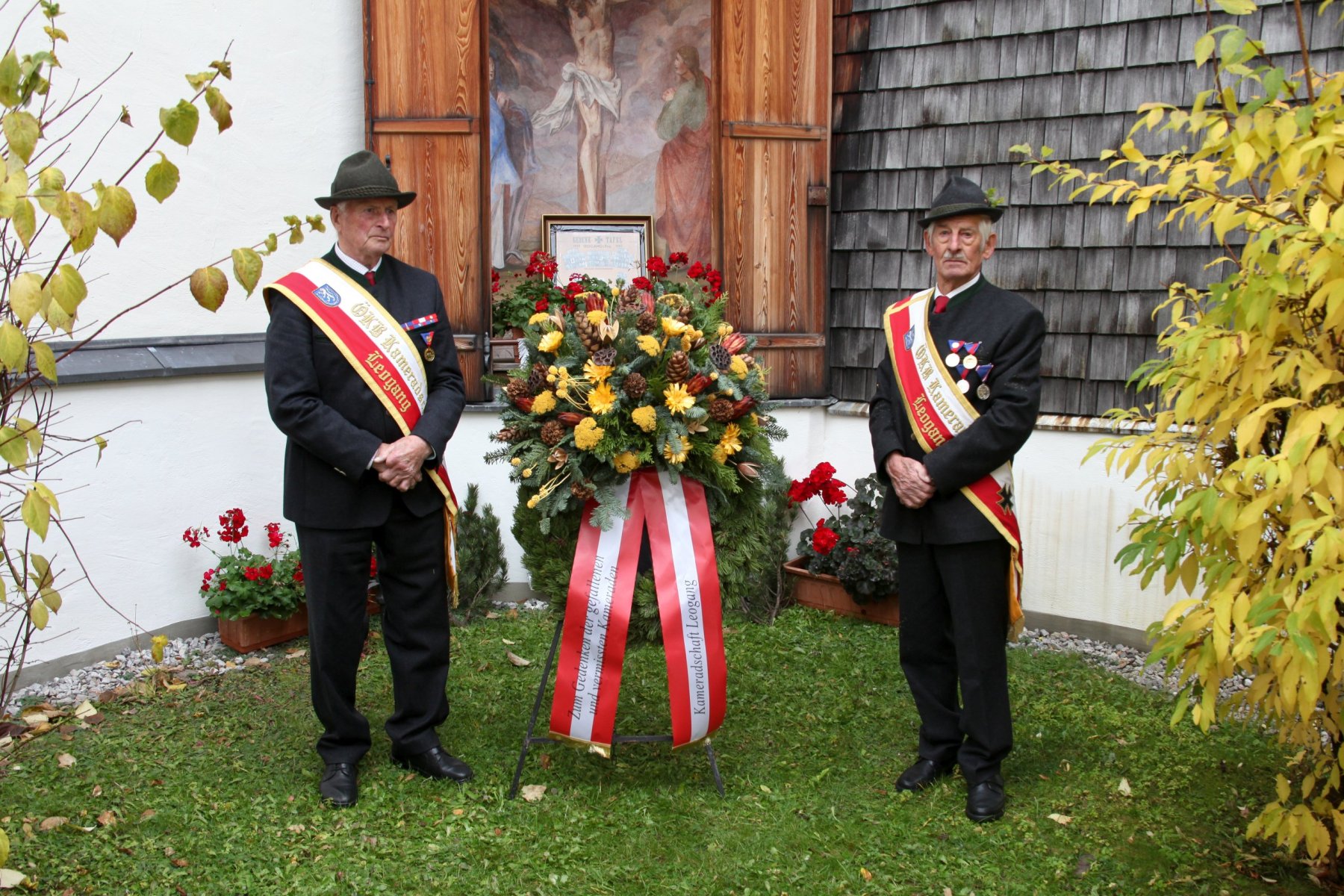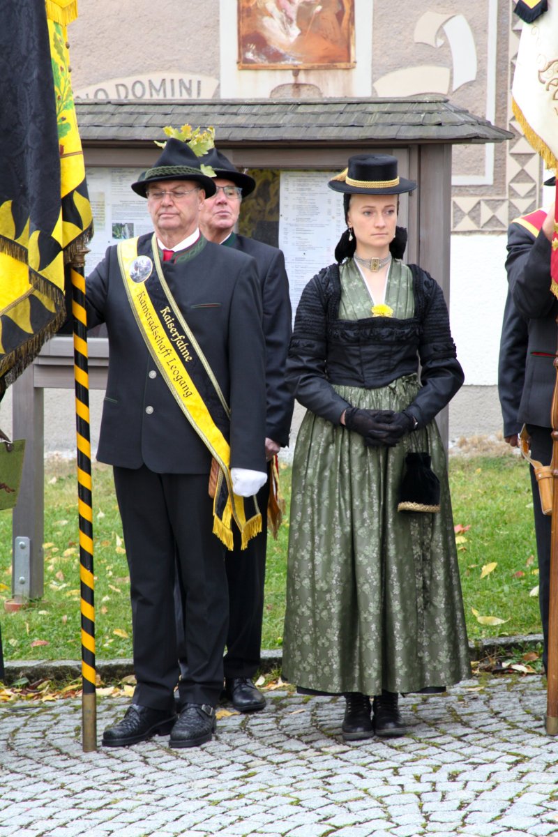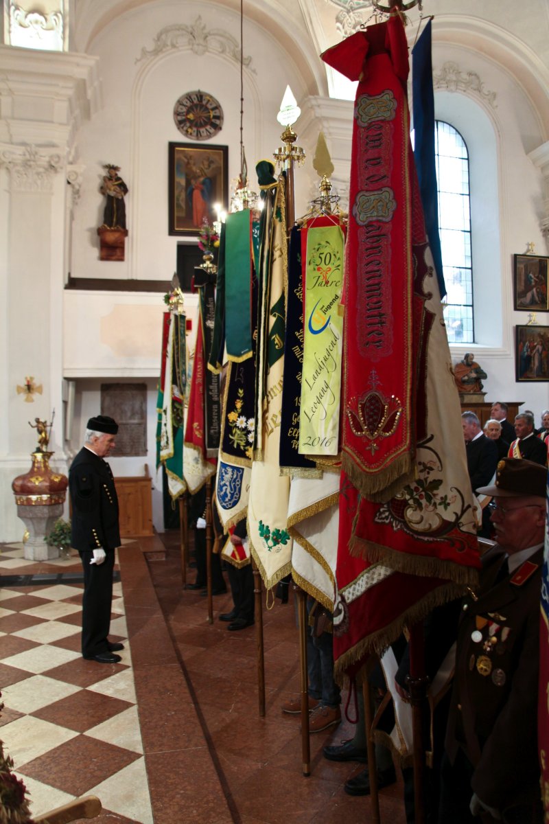 Der Tag der Kameradschaft am österreichischen Nationalfeiertag war für die Pfarrgemeinde Leogang allerdings zunächst einmal ein Festtag! Nicht nur, weil neben der Kameradschaft weitere neun Vereine dem Sonntags-Gottesdienst einen würdigen und prächtigen Rahmen verliehen, sondern auch, weil die historische Fahne des ehemaligen Heimkehrer-Vereins, nunmehr frisch restauriert, unter der Fahnenpatin Elisabeth Madreiter ihren erneuerten kirchlichen Segen erhielt. Und das unter den festlichen Klängen der Musikkapelle Leogang und den Liedern von Martina und Monika.