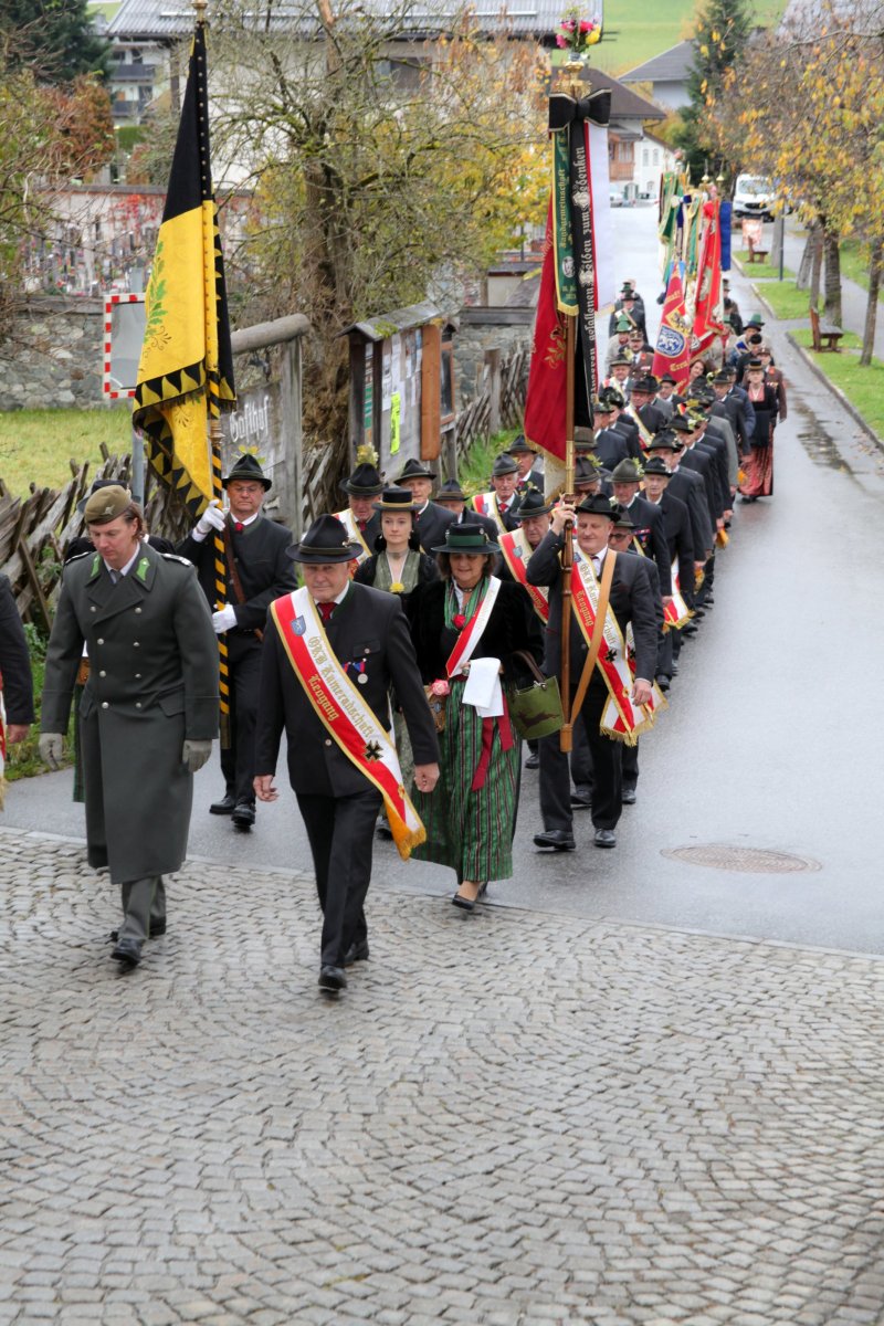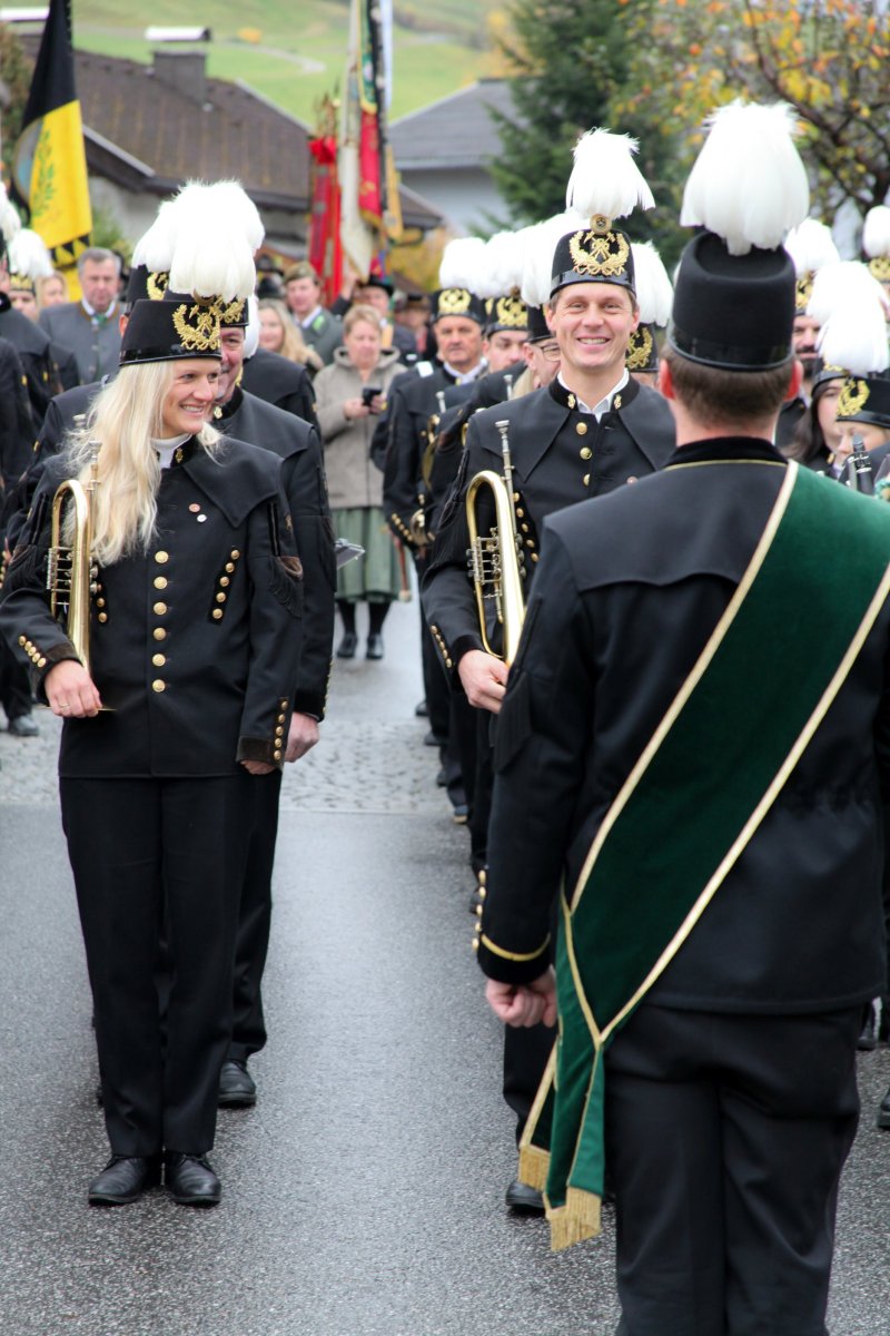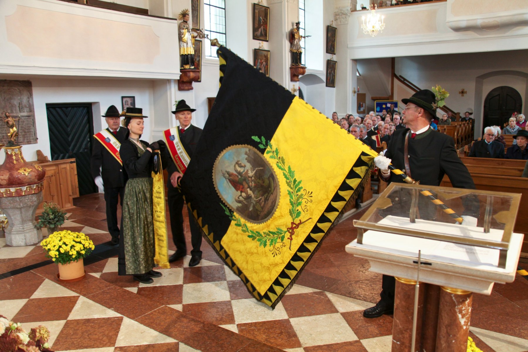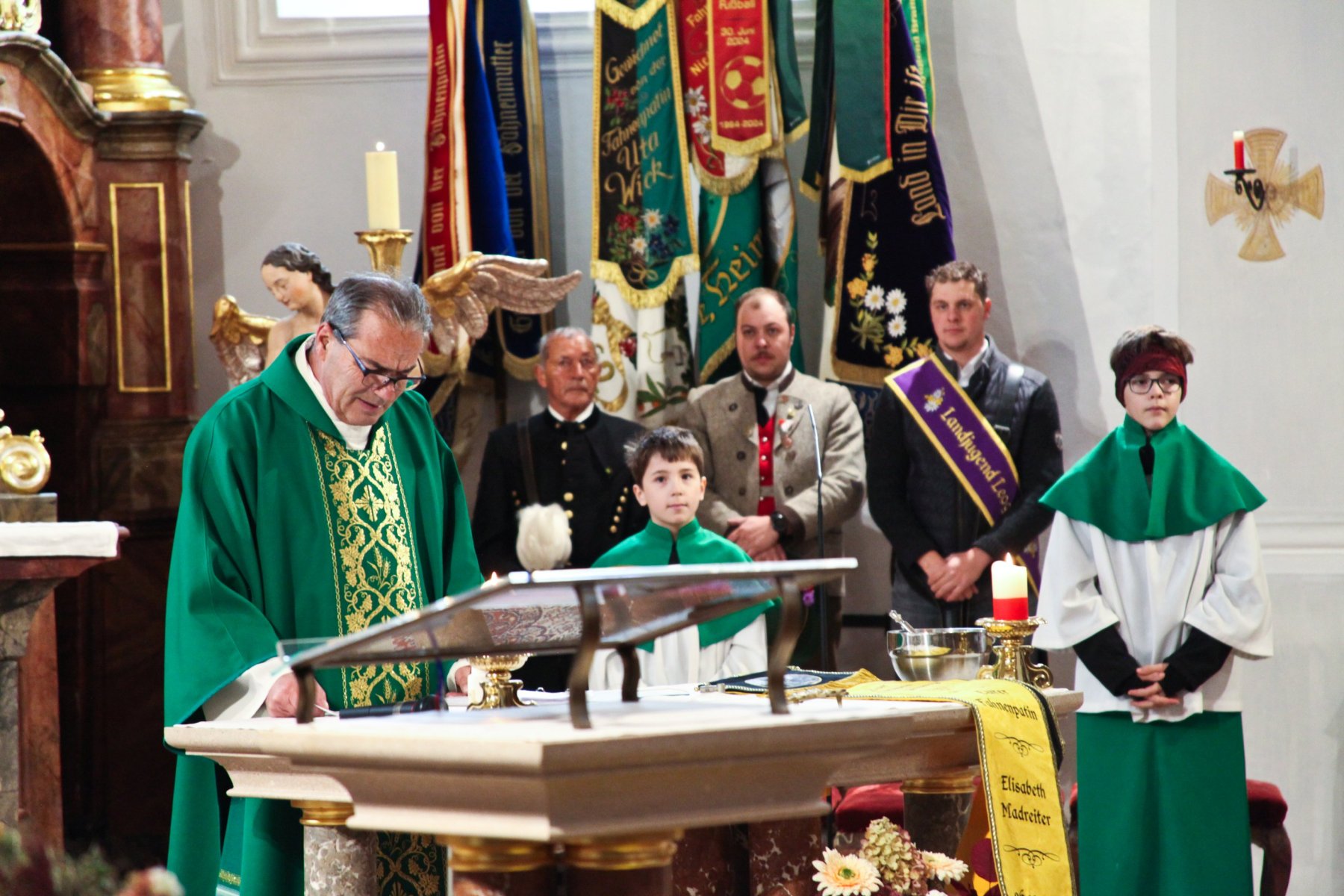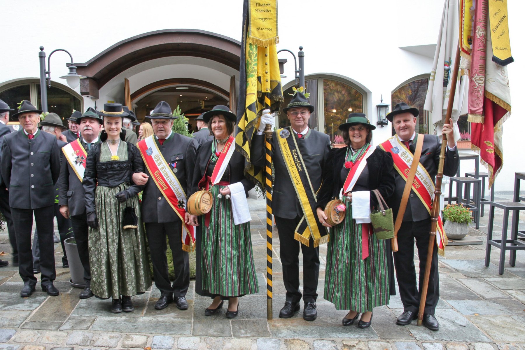 Der Tag der Kameradschaft am österreichischen Nationalfeiertag war für die Pfarrgemeinde Leogang allerdings zunächst einmal ein Festtag! Nicht nur, weil neben der Kameradschaft weitere neun Vereine dem Sonntags-Gottesdienst einen würdigen und prächtigen Rahmen verliehen, sondern auch, weil die historische Fahne des ehemaligen Heimkehrer-Vereins, nunmehr frisch restauriert, unter der Fahnenpatin Elisabeth Madreiter ihren erneuerten kirchlichen Segen erhielt. Und das unter den festlichen Klängen der Musikkapelle Leogang und den Liedern von Martina und Monika.
