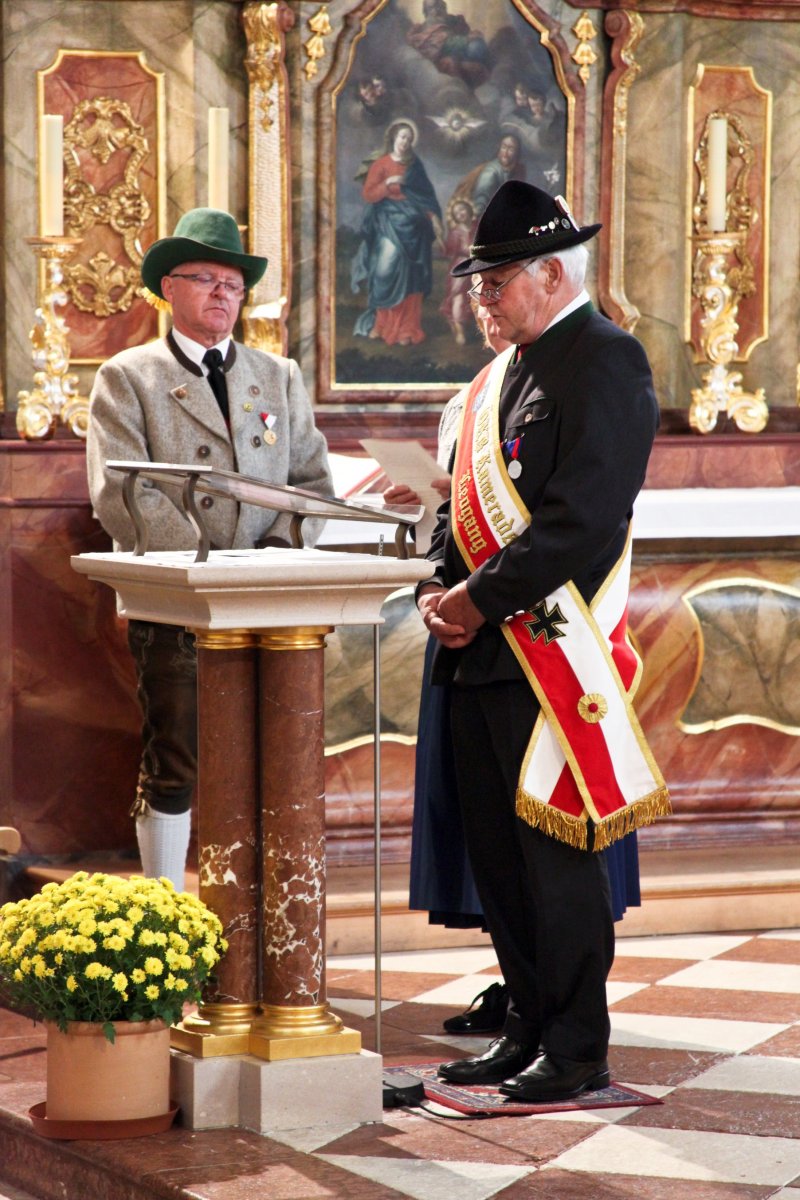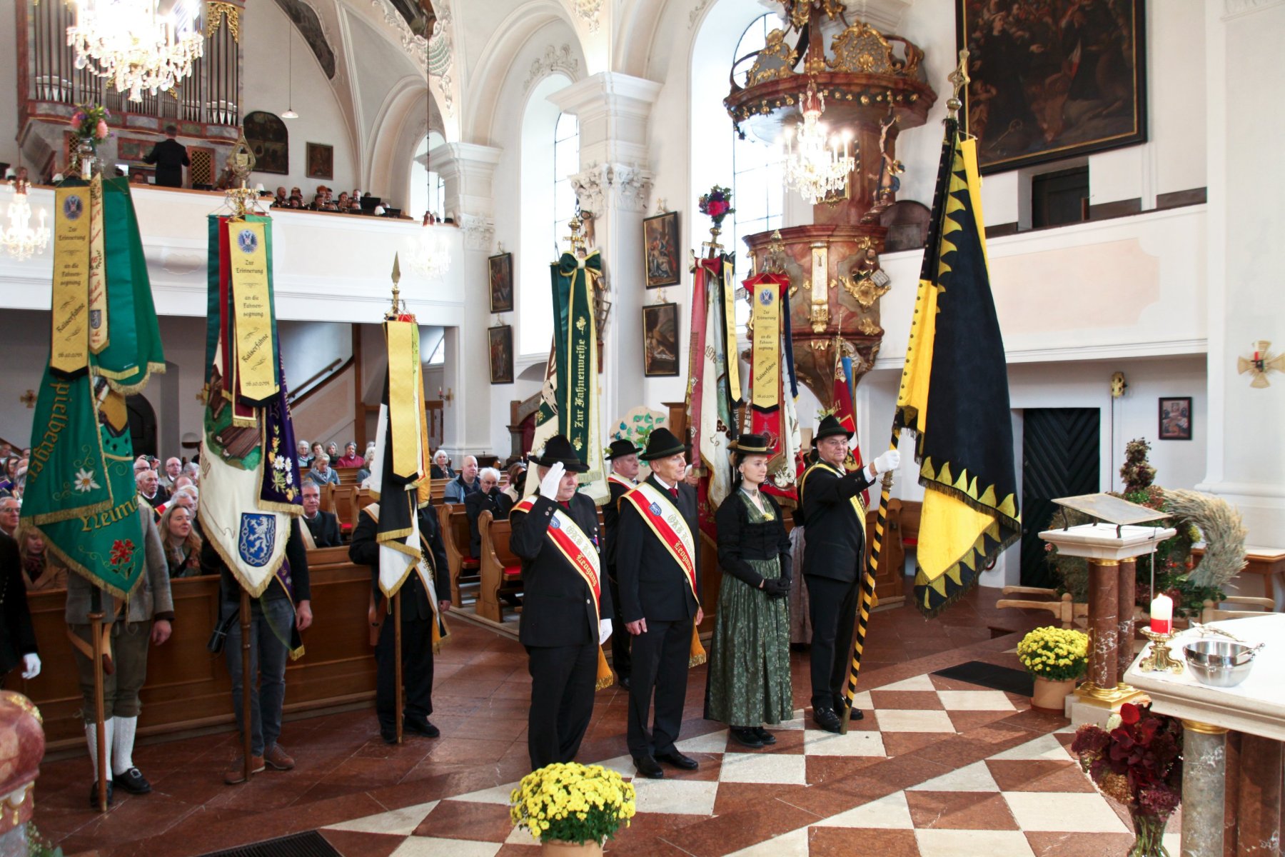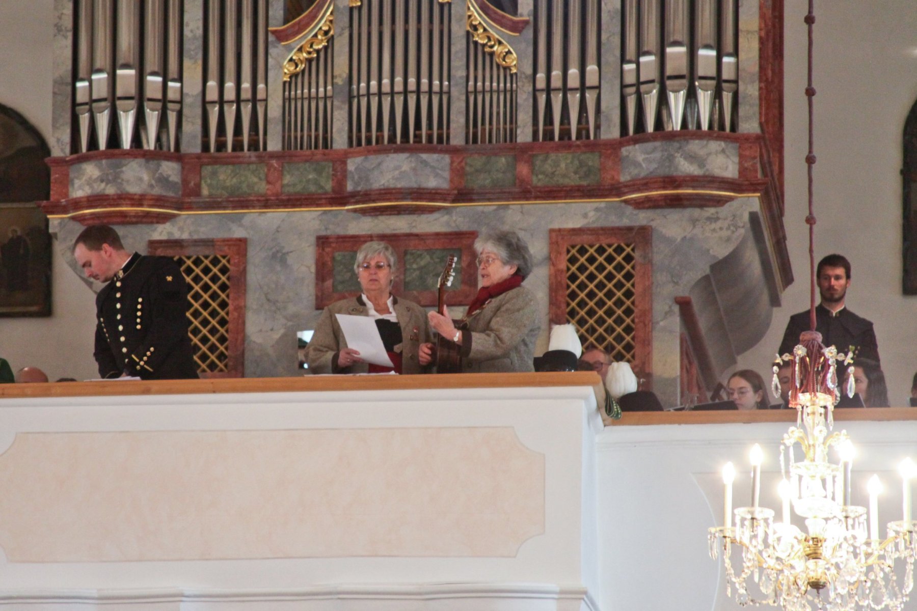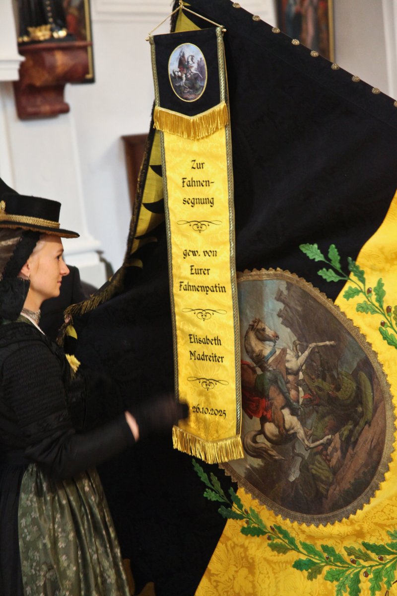 Der Tag der Kameradschaft am österreichischen Nationalfeiertag war für die Pfarrgemeinde Leogang allerdings zunächst einmal ein Festtag! Nicht nur, weil neben der Kameradschaft weitere neun Vereine dem Sonntags-Gottesdienst einen würdigen und prächtigen Rahmen verliehen, sondern auch, weil die historische Fahne des ehemaligen Heimkehrer-Vereins, nunmehr frisch restauriert, unter der Fahnenpatin Elisabeth Madreiter ihren erneuerten kirchlichen Segen erhielt. Und das unter den festlichen Klängen der Musikkapelle Leogang und den Liedern von Martina und Monika.