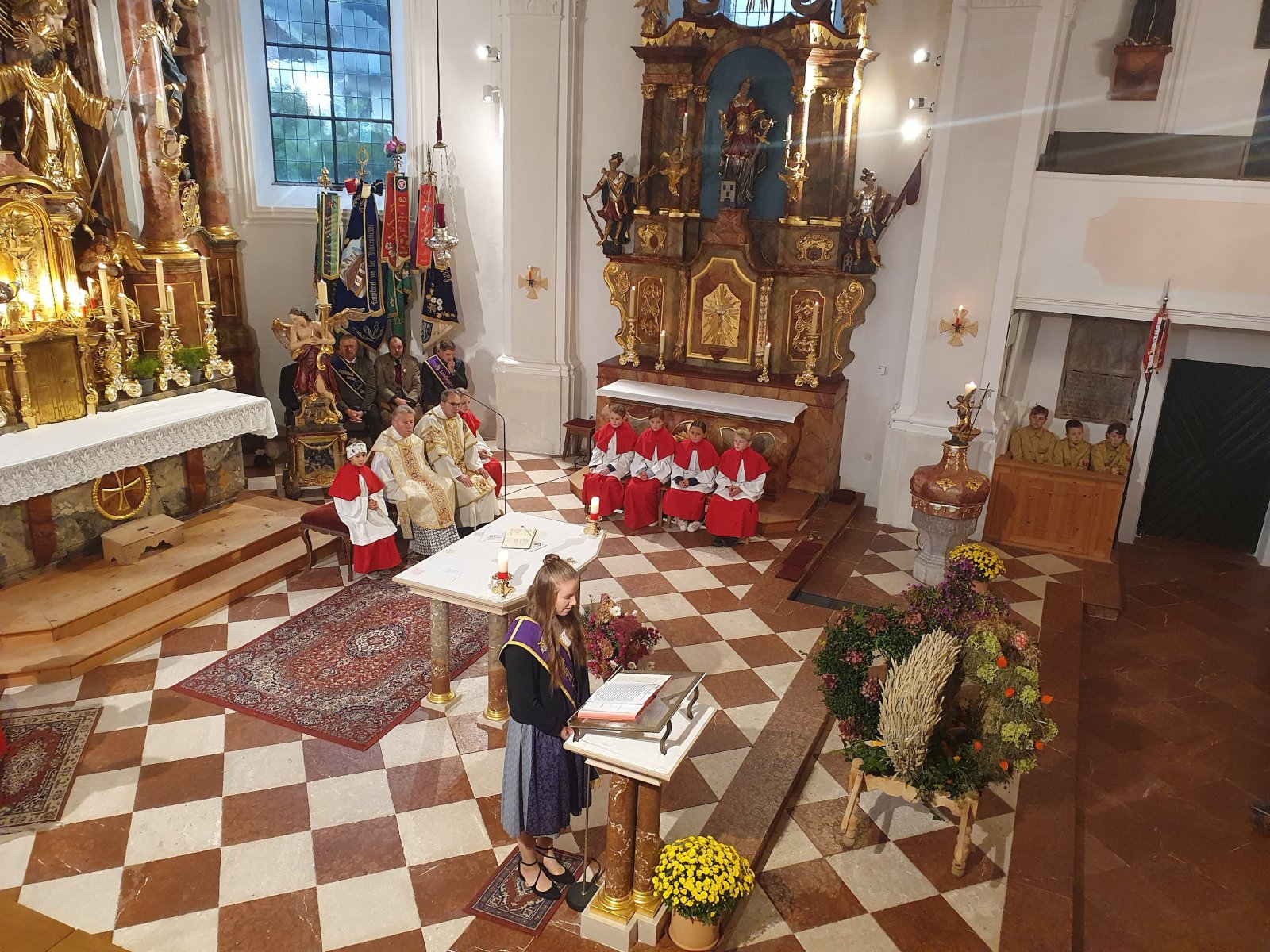Wie in jedem Jahr, das frei von Missernten und groben Unwettern blieb, wurde beim Gottesdienst dafür gedankt und gebetet, dass wir auch weiterhin in einer intakten und gesunden Natur leben und wirtschaften dürfen. Wofür da alles Danke gesagt werden kann, davon wussten die Volksschulkinder beim Danklied nach der Kommunion ein Lied zu singen: