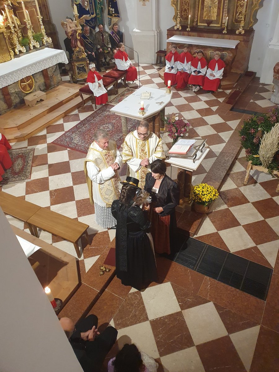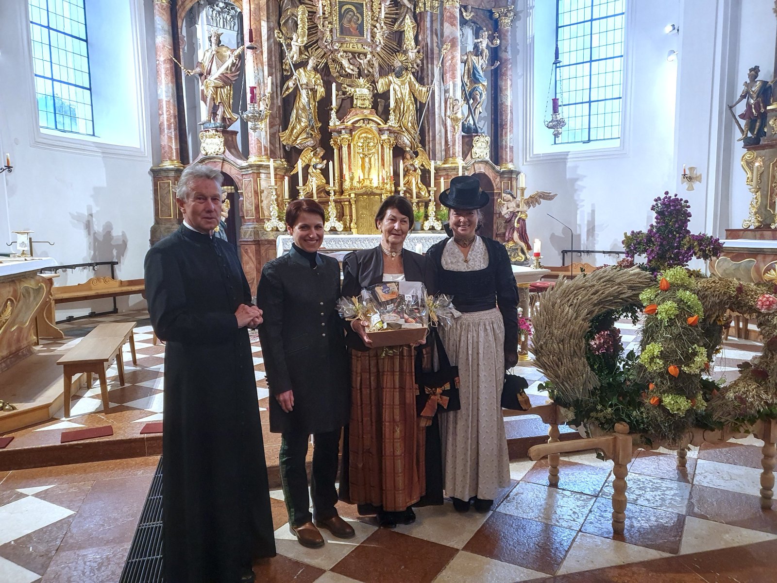 Danke sagten die Gottesdienstbesucher aber nicht nur für die „Früchte der Erde und der menschlichen Arbeit“, wie es im Schlusssegen so schön heißt, sondern auch für die Früchte menschlicher Begegnungen und Zeichen der Nächstenliebe. So bot das Erntedankfest auch den passenden Rahmen, um unserer Lisi Scheiber, die sich viele Jahre in der Pfarrcaritas engagiert hat, Danke zu sagen: für die zahlreichen Besuche bei unseren betagten Mitbürgern, den Kranken, für die offenen Augen, die die Nöte der anderen wahrgenommen und diese in der Caritas vorgebracht haben und die vielen ehrenamtlichen Arbeitsstunden, die kaum jemand bemerkt. Ein herzliches „Vergelt’s Gott“ dafür!